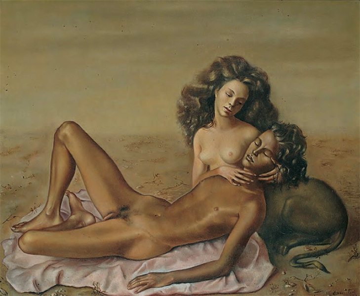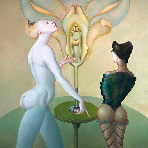 Fini (1907 –1996), pintora, ilustradora, diseñadora y escritora se forjó como autodidacta durante sus primeros años de formación en Italia y se trasladó a París en 1931 donde conoció a personajes de la élite de la vanguardia europea de mediados del siglo XX como Jean Cocteau, Albert Camus o Georges Bataille, así como al grupo de surrealistas entre los que se encontraban André Breton, Max Ernst y Salvador Dalí. Sin embargo, y a pesar de que la estética y las temáticas de su trabajo la enmarcaban dentro de esa corriente, rechazó la etiqueta de surrealista no solo por su carácter libertario e independencia artística, sino por la misoginia de André Breton, líder del movimiento. El inconsciente, la brujería y la mitología habitan la obra de esta artista en la que las mujeres son las figuras fuertes, poderosas, eróticas, sexuales y dominantes, mientras que la figura masculina resulta pasiva y andrógina.