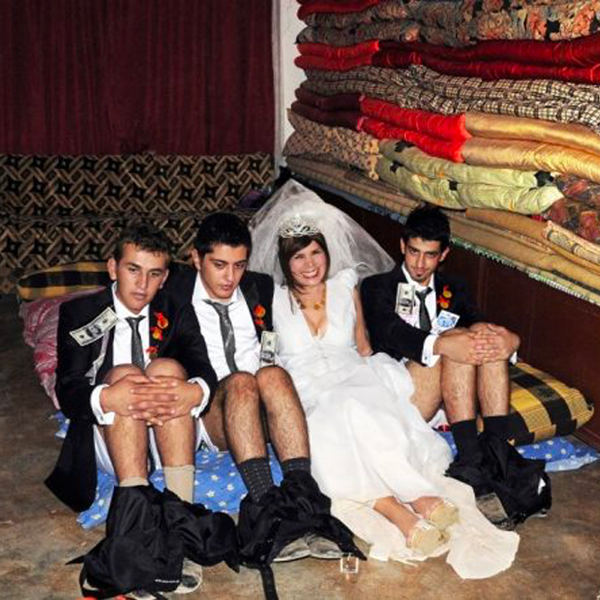 En Married, With Three Men, asiste a una ceremonia en la que ella misma se casa con tres jóvenes de no más de 18 años en un pueblo rural del sur de Turquía. Los vecinos del pueblo, atónitos, observan un acontecimiento tan familiar como disruptivo. Suena una música que por momentos parece festiva, pero resulta ser una marcha que anuncia que algo malo va a pasar. A través de esta performance, se refiere a la práctica aceptada para los hombres, que pueden casarse con más de una mujer y con frecuencia con niñas. Las críticas –muy numerosas– que ha suscitado este y otros trabajos en los medios locales, son para ella parte de su obra. Y lo son justamente porque el objetivo es incomodar y hacer pensar a una cultura cuyas tradiciones son profundamente desiguales y desequilibradas.